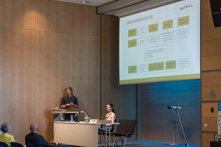 Anja Thor (quaas-stadtplaner) und Daniel Cebulla (JENA-GEOS-Ingenieurbüro GmbH) nutzen diesen Rahmen, um die in TRAILstarter genutzte Methodik zur Ableitung von Energiebedarfswerten zu präsentieren. Die Methodik verwendet frei zugängliche Geodaten des Landes Thüringen und erfüllte somit die gegebenen Voraussetzungen.